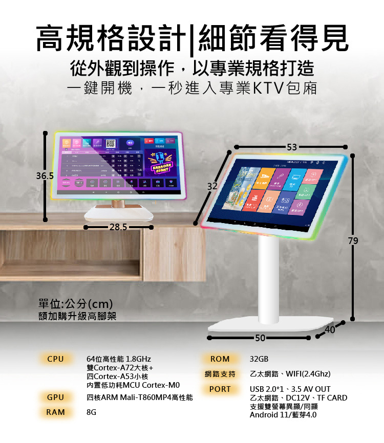 - 獨家RGB燈光技術|歡唱氣氛一觸即發,氣氛直接滿分!秒變KTV!