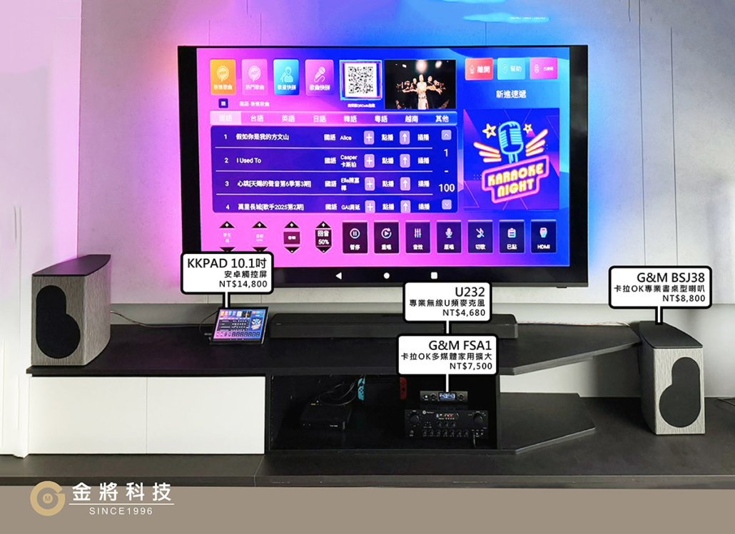 【組裝產品】KKPAD 10.1吋安卓觸控屏點歌機 / 伴唱機+U232 專業無線U頻麥克風+G&M FSA1卡拉OK多媒體家用擴大+G&M BSJ38 卡拉OK專業書桌型喇叭