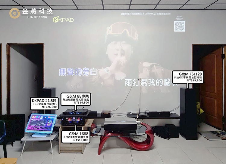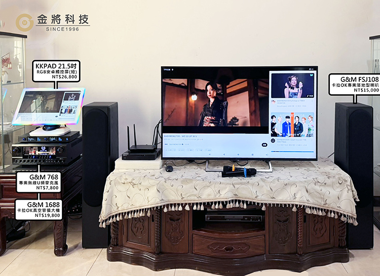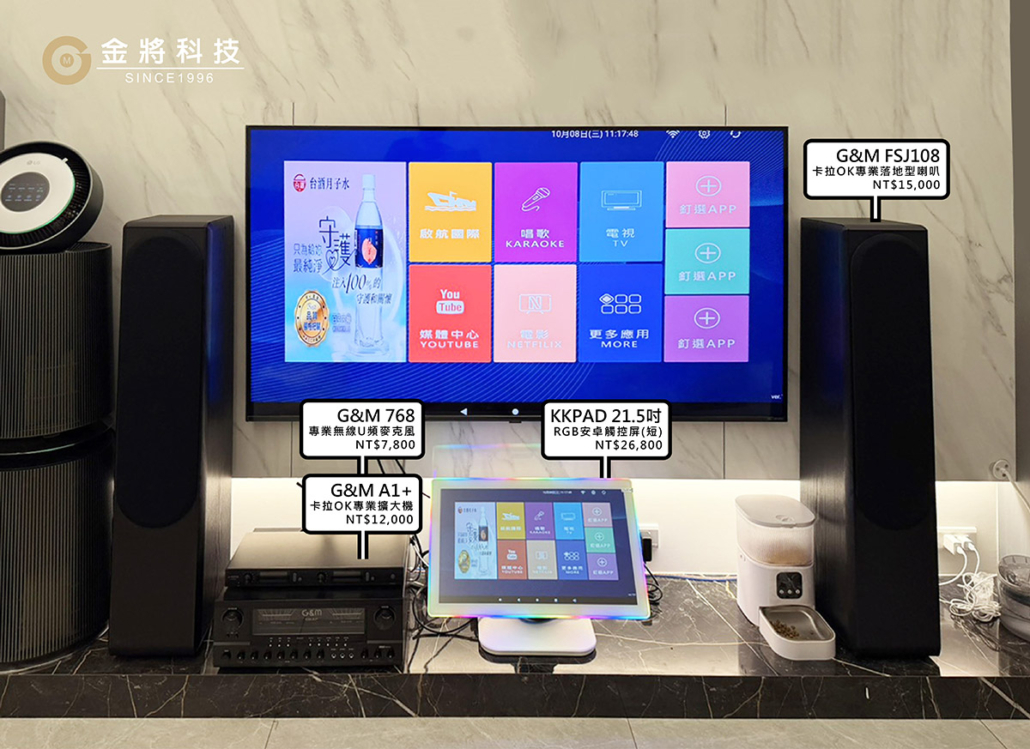 組裝產品】KKPAD 21.5吋RGB安卓觸控屏點歌機 / 伴唱機(短)+G&M G&M 88專業無線U頻充電式麥克風+G&M 1688卡拉OK真空管擴大機+G&M FSJ128 卡拉OK專業落地型喇叭