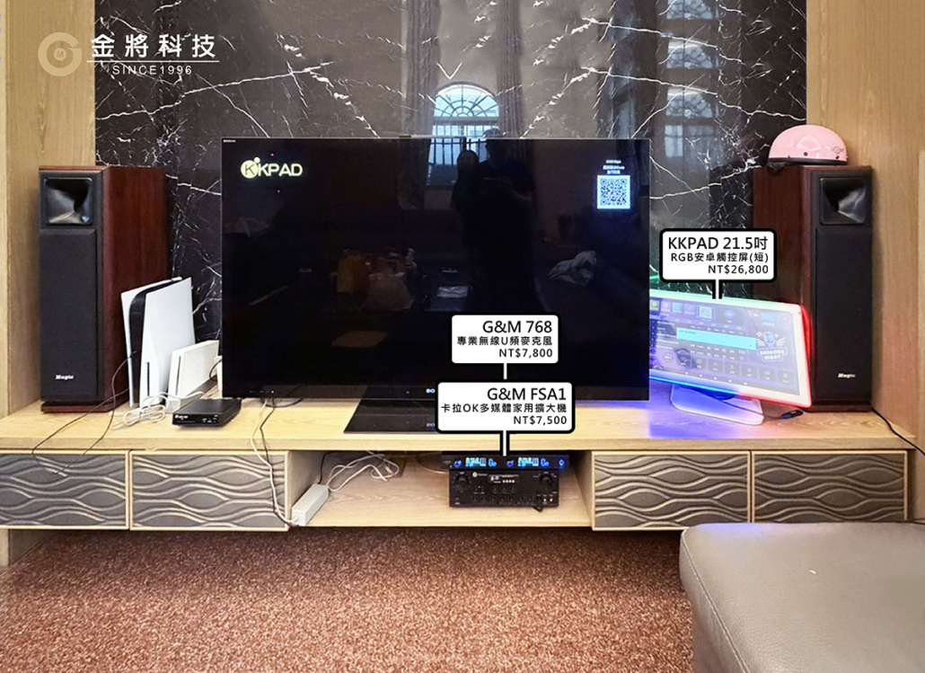 【組裝產品】KKPAD 21.5吋RGB安卓觸控屏點歌機 伴唱機(短)+G&M 768 專業無線U頻麥克風+G&M FSA1卡拉OK多媒體家用擴大機