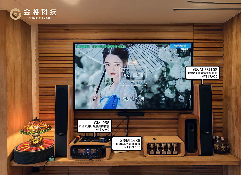 組裝產品】GM-298即插即用U頻無線麥克風+G&M 1688卡拉OK真空管擴大機+G&M FSJ108 卡拉OK專業落地型喇叭